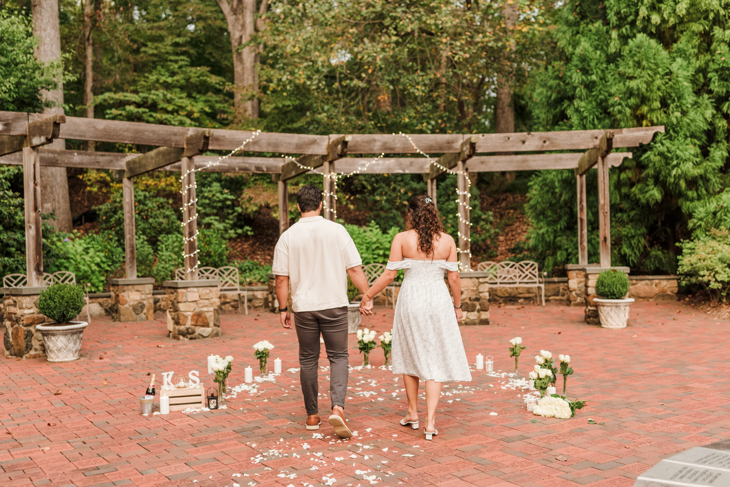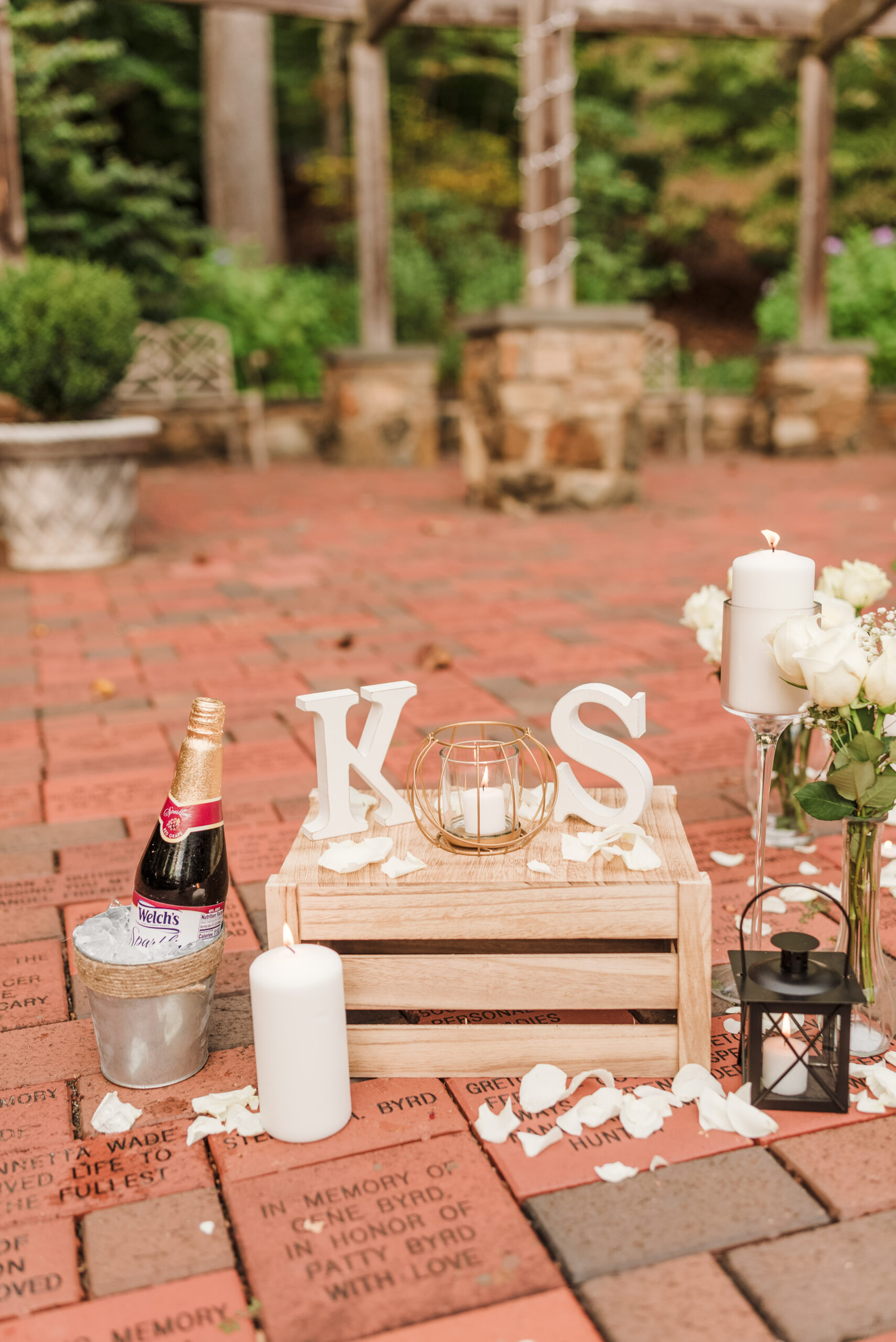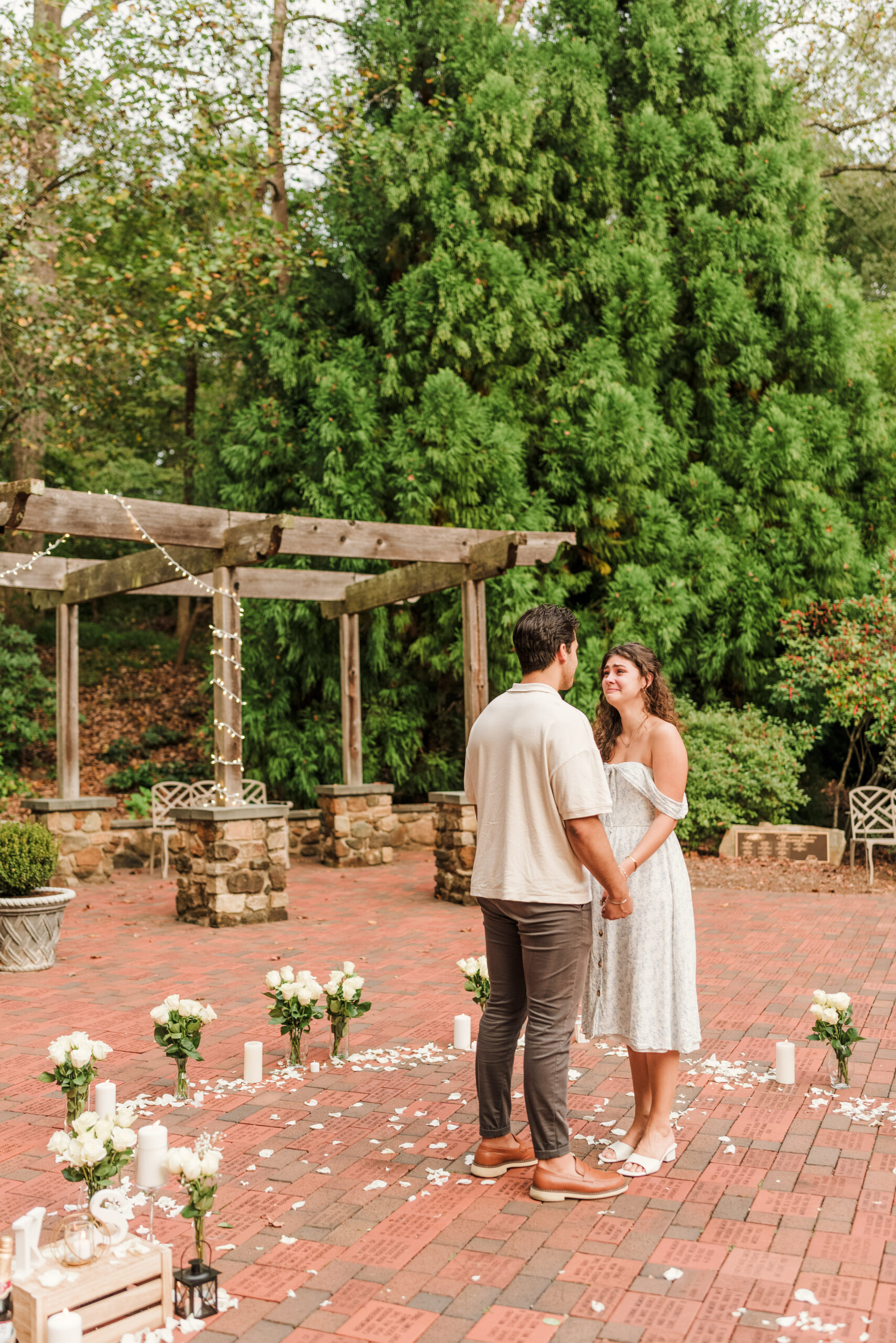 The Awareness Gardens in Lynchburg, VA made for the cutest backdrop for Stephen to pop the big question. White roses, candles, and lights were everywhere (aka all of Kylee's favorite things). Once the spot was set and decorations were done, it was time!